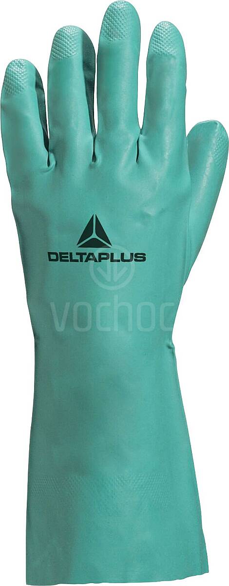 Rukavice s vysokou chemickou odolností poskytují spolehlivou ochranu proti chemikáliím i virům a jsou ideální pro práci s pesticidy. Nitrilový povlak zajišťuje výbornou přilnavost i v olejnatém a mastném prostředí, což usnadňuje bezpečnou manipulaci s předměty. Díky své zesílené konstrukci, větší délce a tloušťce 0,38 mm chrání nejen ruce, ale i předloktí. Nepudrované, voděodolné provedení bez latexu a silikonu je vhodné i pro citlivou pokožku.