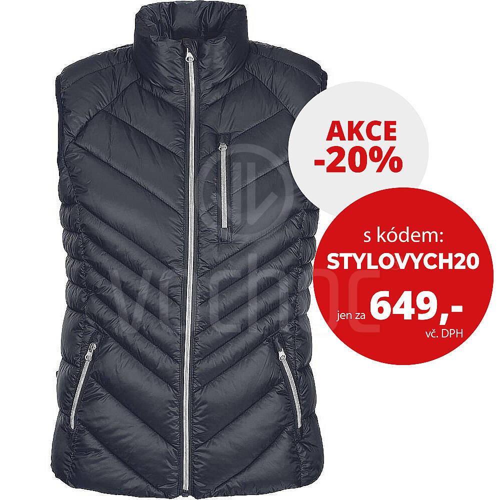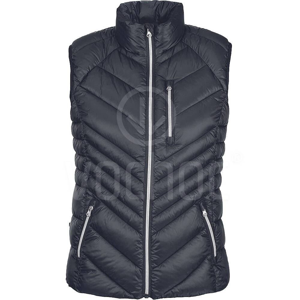 Dámská zateplená vesta se zapínáním na zip, s dvěma bočními kapsami na zip a jednou náprsní kapsou na zip. Díky použitému materiálu je vesta velmi lehká a příjemná na nošení.