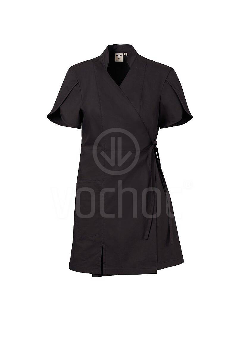 Elegantní a pohodlný dámský plášť s krátkým rukávem v moderním tulipánovém střihu a se šálovým límcem. Je vyroben z kvalitní směsi bavlněného popelínu, polyesteru a vlákna Lycra® T400®, která zajišťuje výjimečnou pružnost, tvarovou stálost a vysokou prodyšnost i při celodenním nošení.