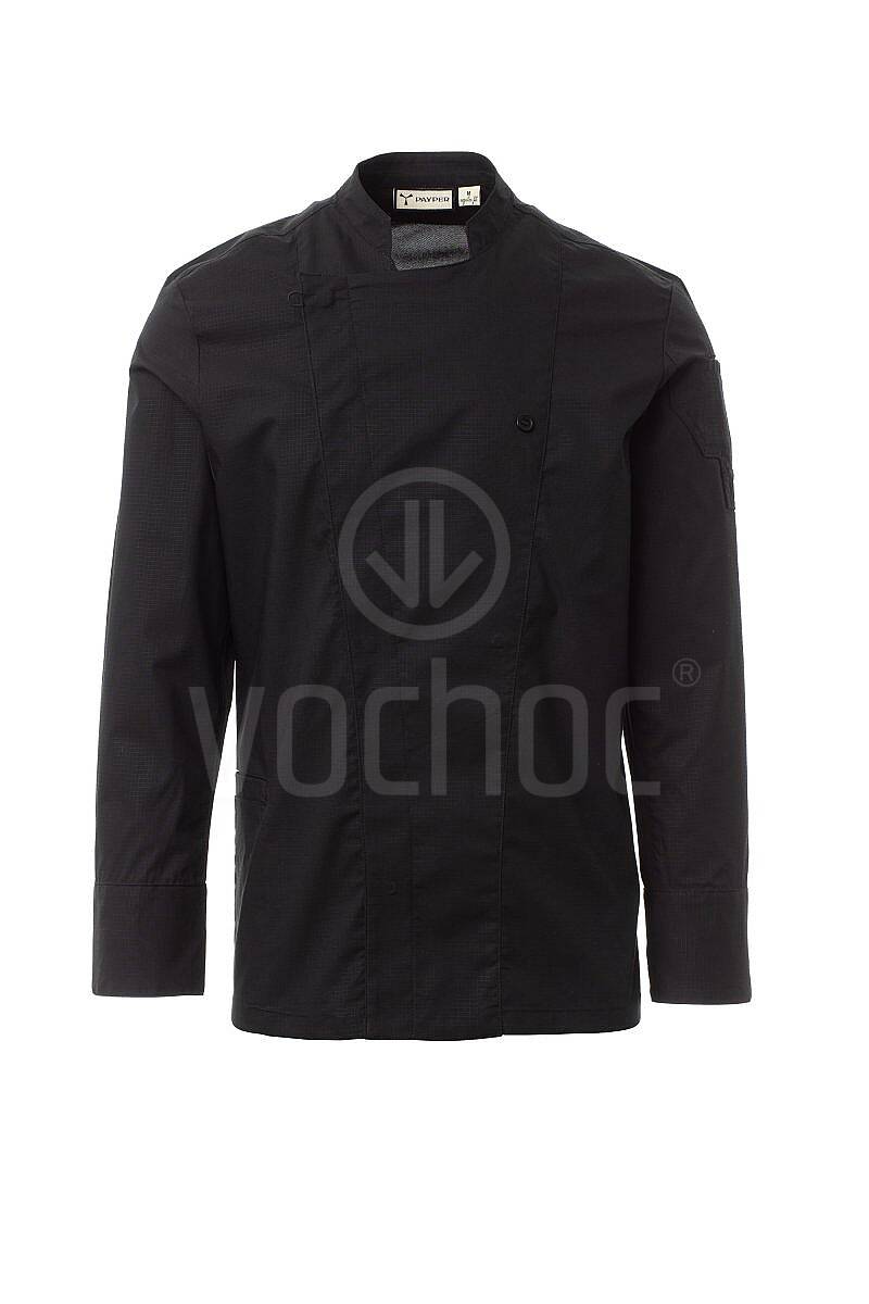 Pánský kuchařský rondon se stojáčkem, vyrobený z odolného bavlněného ripstopu s příměsí Lycry® T400®, nabízí vynikající elasticitu, tvarovou stálost a vysokou prodyšnost. Maximální komfort při práci zajišťují prodyšné síťované panely na zádech, v podpaží a v průramcích, které podporují cirkulaci vzduchu i během náročných směn.