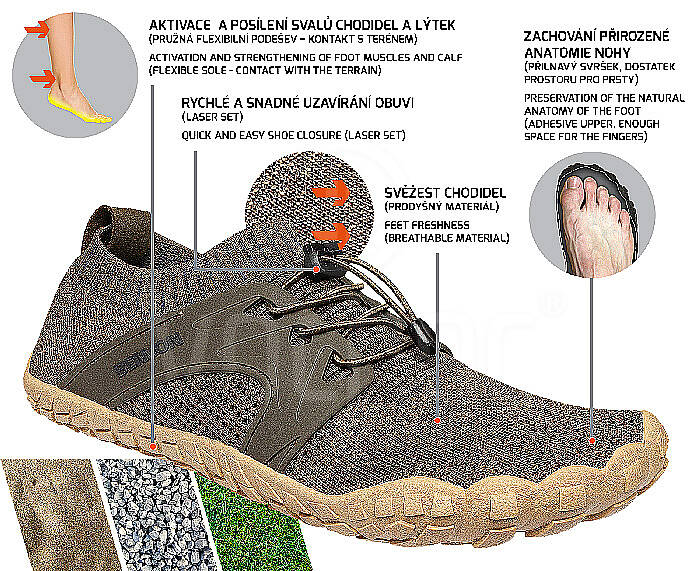 Volnočasová obuv vyvinuta pro relaxaci, aktivaci a posílení svalů chodidla a lýtek. Obuv imituje chůzi naboso. Bosky jsou vybaveny přilaným textilním svrškem, který kopíruje tvar nohy a flexibilní podešví, která se přizpůsobuje chodidlu a poskytuje pocit souznění s terénem. Uvnitř bot je tenká, vyjímatelná stélka s lehkým zesílením materiálu v oblasti paty pro měkčí došlap.