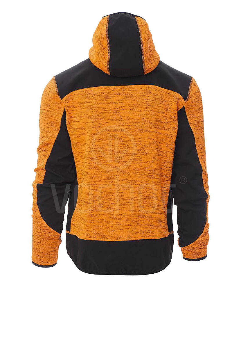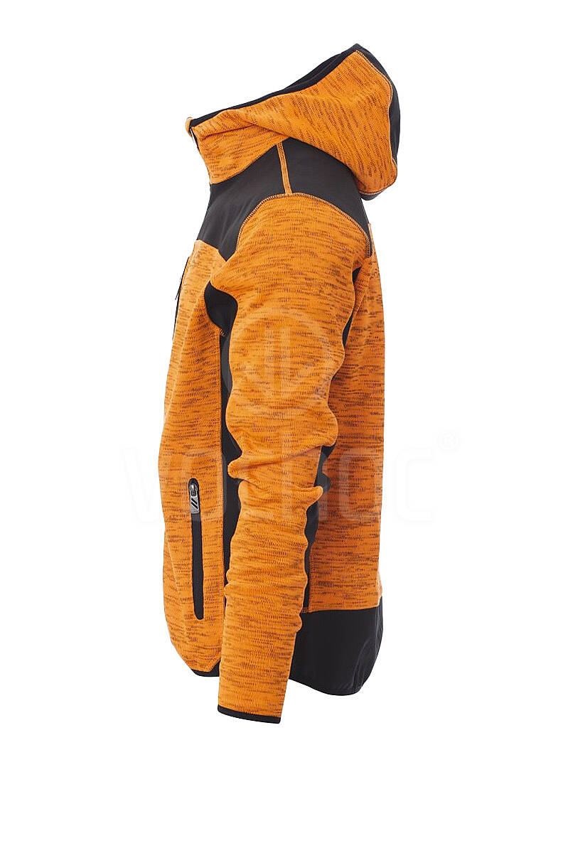Pánská softshellová mikina, utěsněný celozip SBS, tvarovaná kapuce s dvojitým prošitím, tenký lem na zápěstí a v pase, dvě postranní kapsy na zip, jedna kapsa na hrudi. Úplet s vsadkami z černého softshellu.