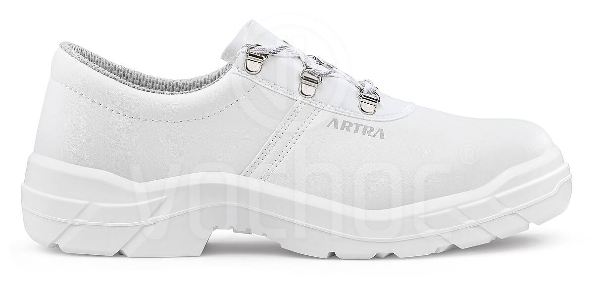 Kvalitní bílá obuv bez bezpečnostních prvků. Vhodná i do mokrých provozů.