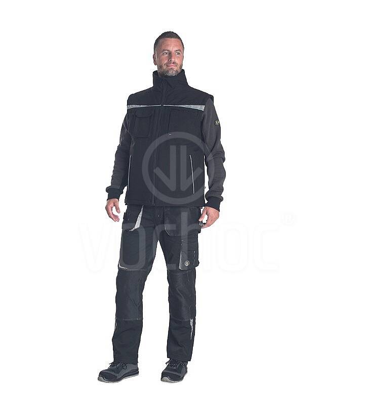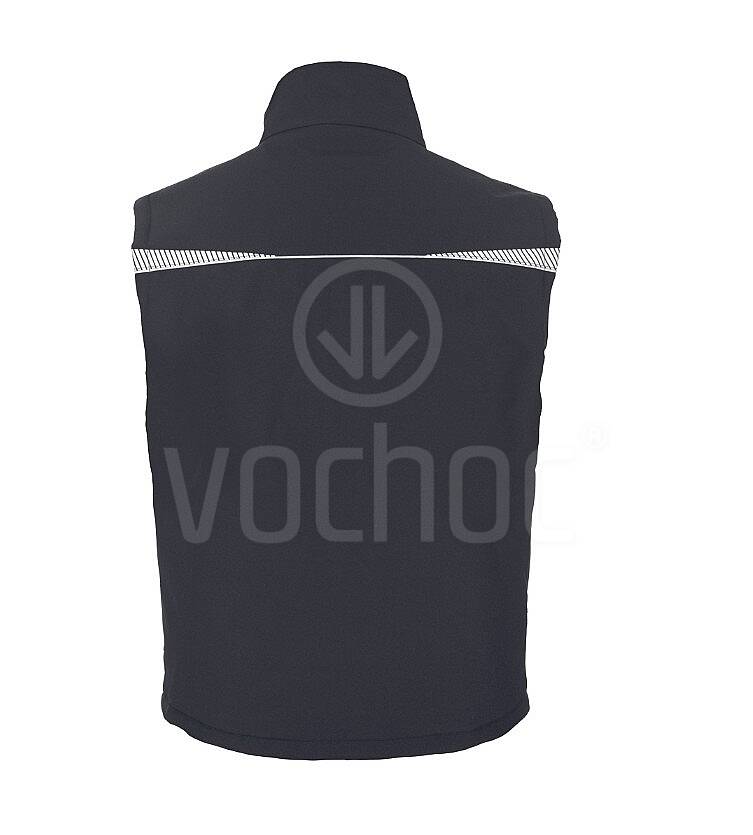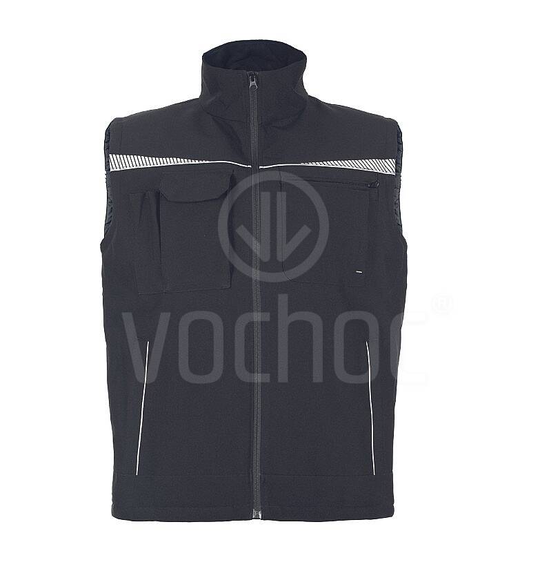 Zimní vesta se zapínáním na zip a reflexními prvky a lemováním. Vesta má dvě boční kapsy na zip, jednu levou náprsní kapsu na zip, jednu náprsní kapsu na mobil s klopou na suchý zip a dvě vnitřní kapsy.
